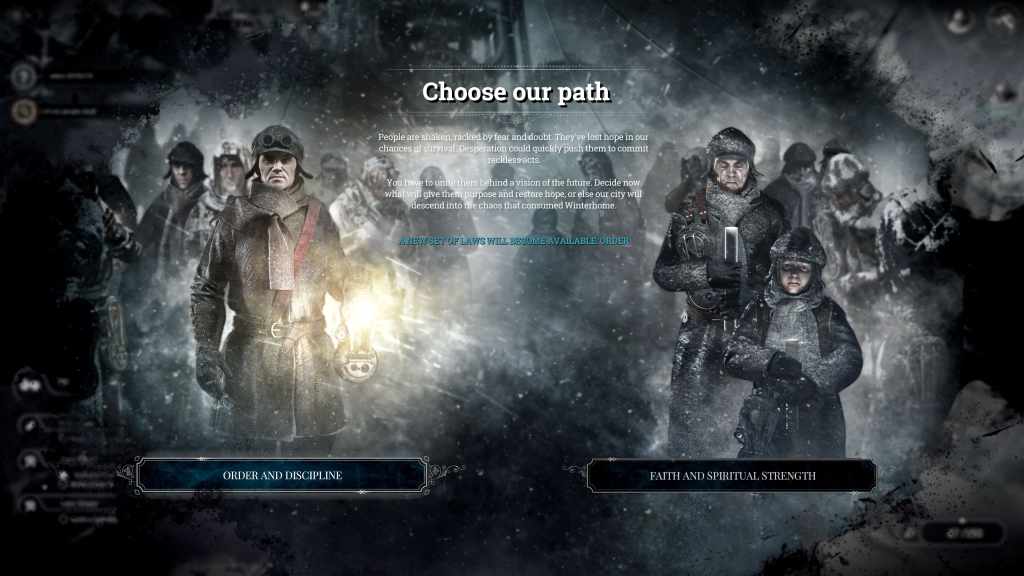 Oyunun müzikleri, animasyonları ve genel atmosferi kusursuz bir uyum içinde. Kar fırtınasıyla birlikte gelen uğultulu rüzgâr sesleri gerçekten o buz gibi kıyamet dünyasının içinde olduğunuzu hissettiriyor. Epik ve kasvetli müzikler, bu yok oluşun eşiğindeki dünyada hayatta kalmaya çalışan lider rolünü daha da etkileyici kılıyor. Oyun; sınırlı kaynaklar ve insan gücüyle, giderek şiddetlenen dondurucu kışlara karşı zamana karşı verilen bir mücadeleyi konu alıyor. Oyuncunun yaptığı her seçim halkın umut ve memnuniyetsizlik seviyesini etkiliyor. Memnuniyetsizlik %75’i aşarsa ve umut %15’in altına düşerse, lider olarak görevden alınıyorsunuz.